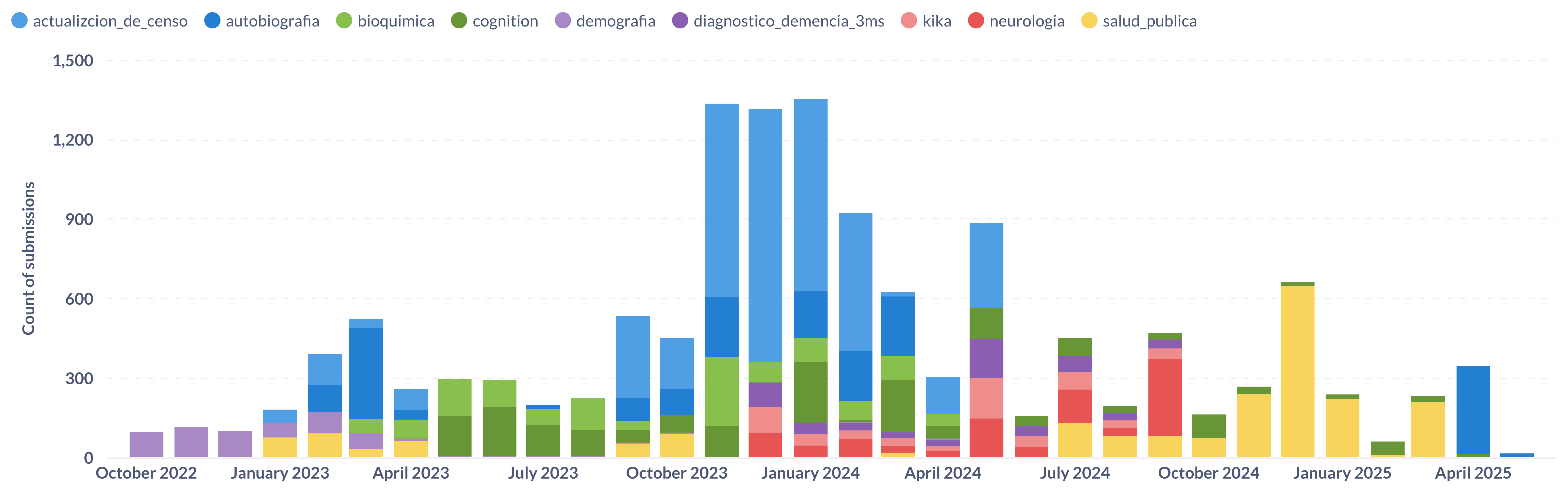 As part of effort to digitize data collection and move to a data lake model, the project recently switched from Microsoft Access to KoboToolbox. KoboToolbox provides us with the ability to collect data offline, push updates to questionnaires and have the forms available in multiple languages. KoboToolbox stores the form submissions in a mongodb database and provides access to it through their API.