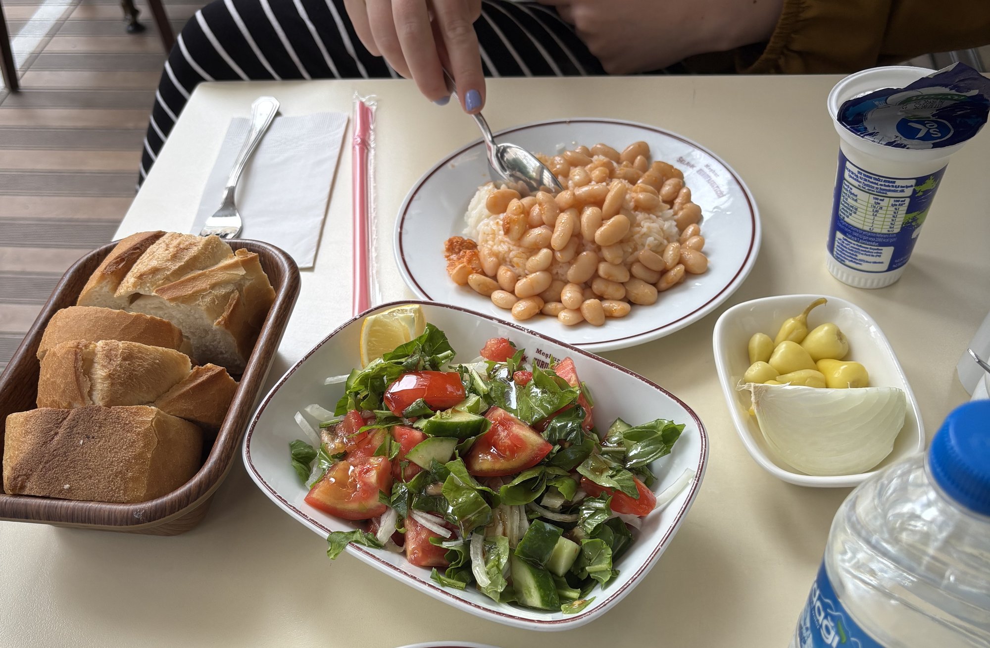 The brief layover in Istanbul matched my expectations of mosques, cats, kebabs and a whole lotta tourists from all over the world. The things that were surprising for me were the plethora of vegetarian options at non-touristy places and the stark contrast between Western and Eastern cultures. It did truly feel like Istanbul was on two separate continents.