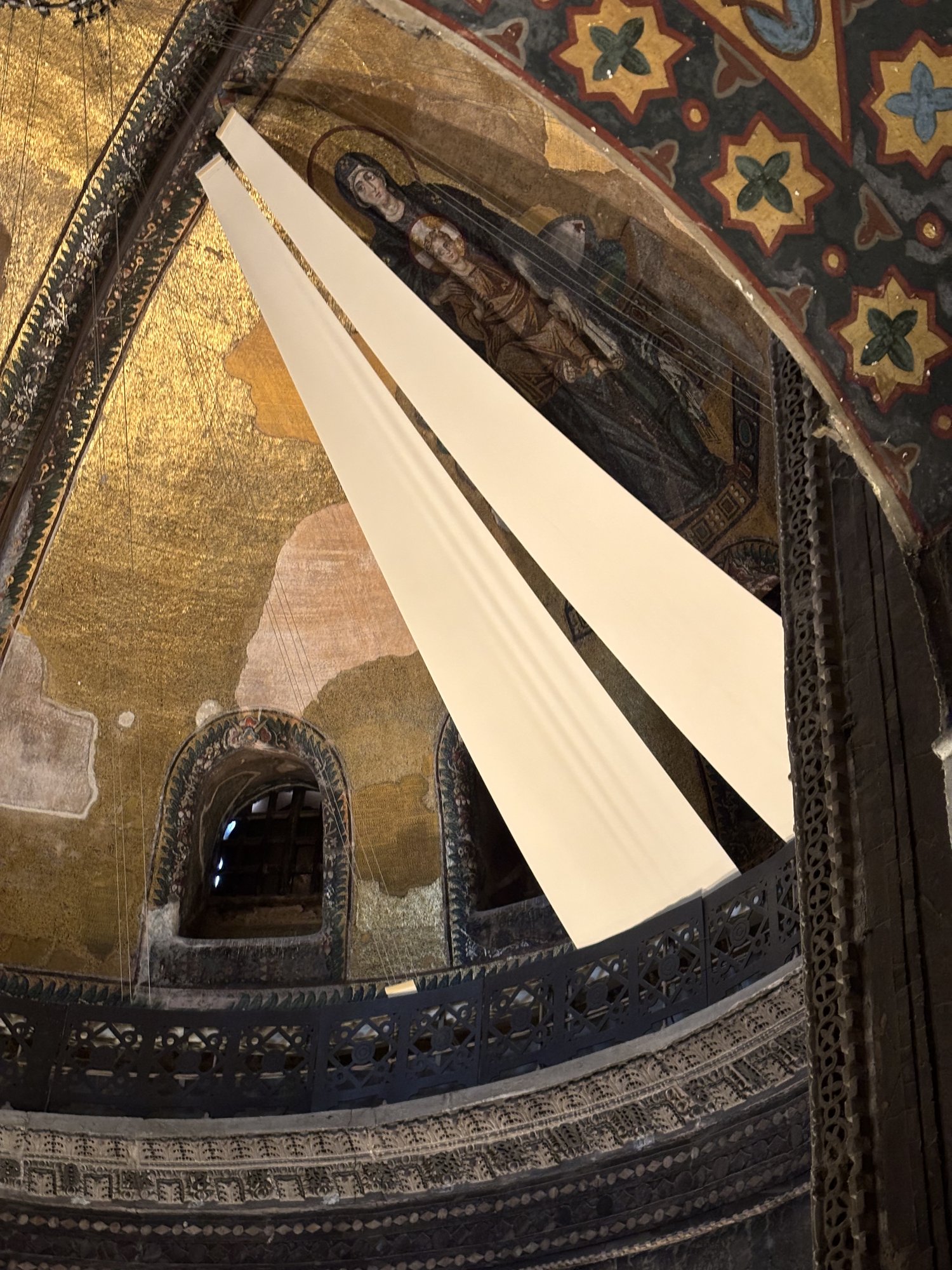 The grand mosque of Istanbul that used to be a church. It still functions as a mosque which means one can go in for free during prayer times. The second floor which requires tickets has preserved tapestries and artwork from when it used to be a church. Women do require a head covering to enter and it was endearing to witness that.